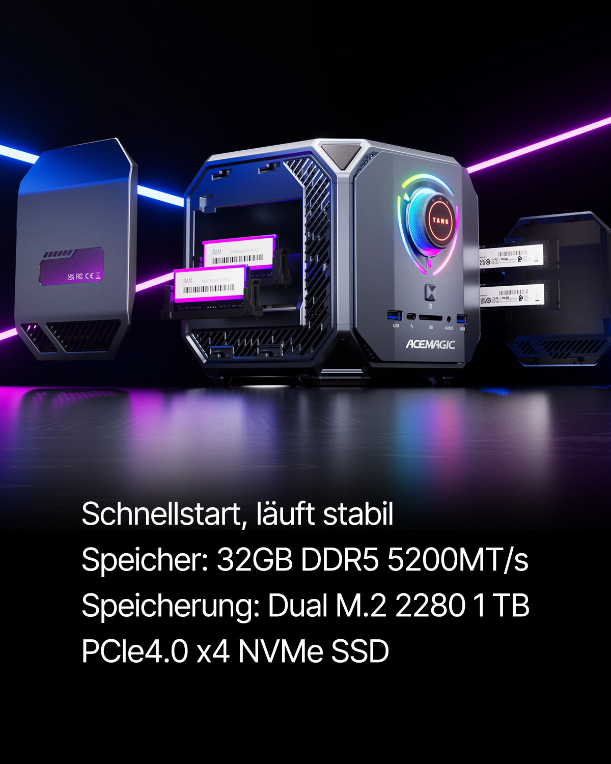 32GB DDR5 5200MHz double canal + 1TB M.2 2280 PCIe4.0×4 NVMe SSD