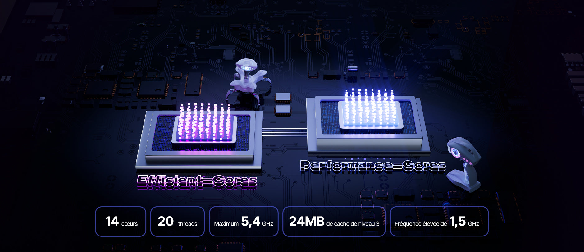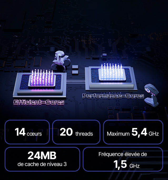 14 cœurs / 20 threads, 2.6 GHz → 5.4 GHz Turbo, 24MB cache