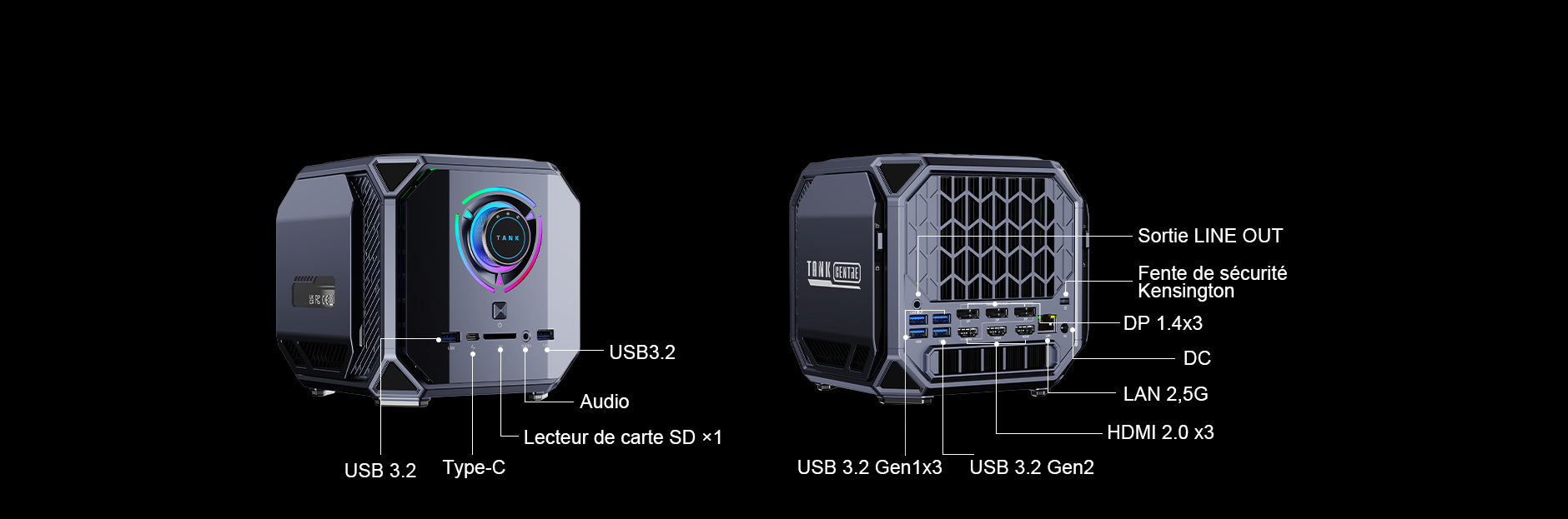 | Sortie vidéo | HDMI 2.0 ×2 (4K@60Hz) USB 4.0 Type-C ×1 (8K@60Hz) DisplayPort 2.0 ×3 (8K@60Hz) |