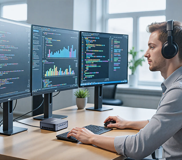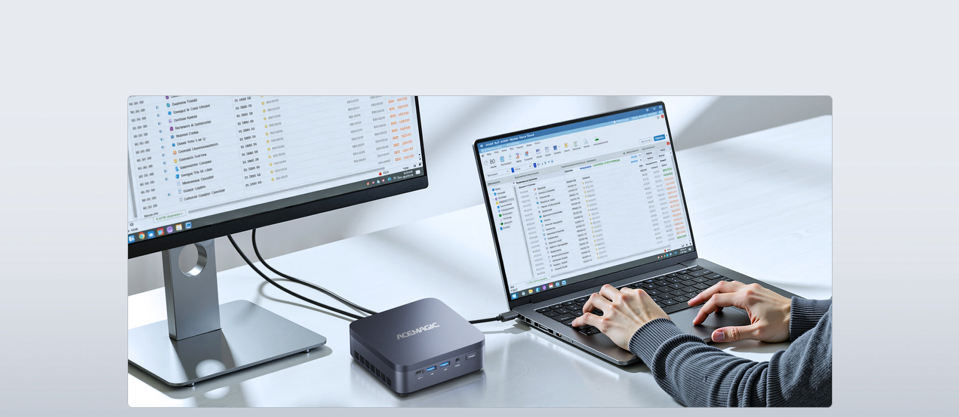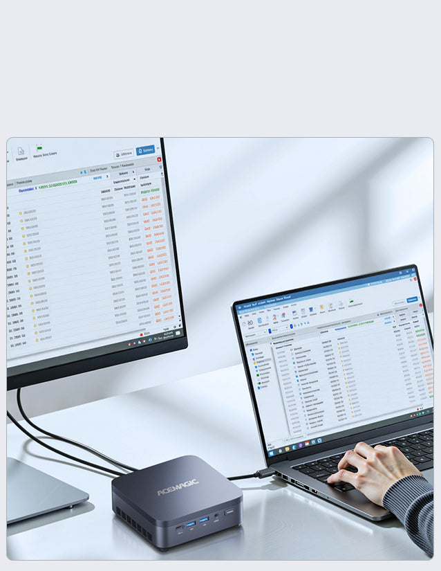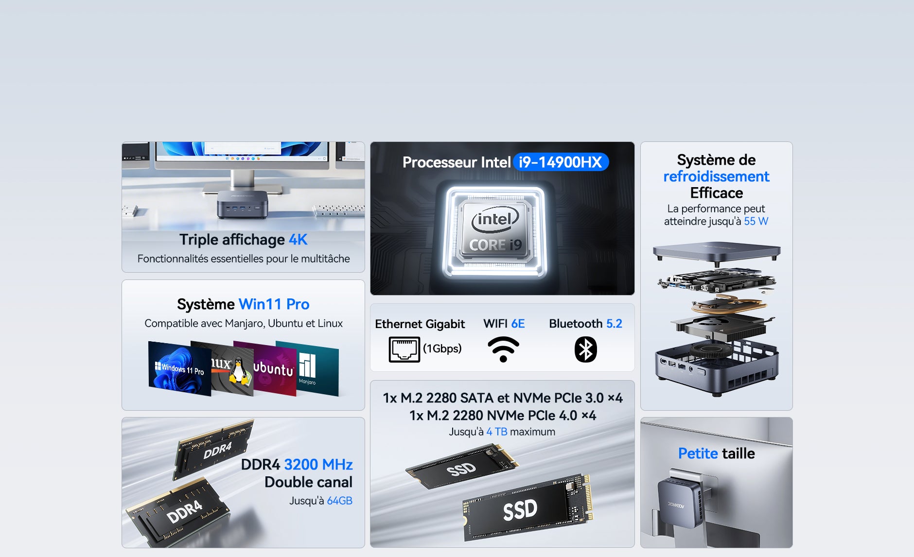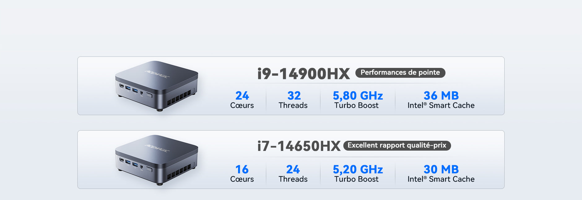 ACEMAGIC Matrix Mini M5 est un mini-PC puissant, équipé d’un processeur Intel® Core™ i9-14900HX. Avec 32 GB de mémoire DDR4 et un SSD de 1 TB. Il prend en charge la sortie triple écran en 4K@60Hz, est compatible avec le Wi-Fi 6E et fonctionne sous Windows 11 Pro.