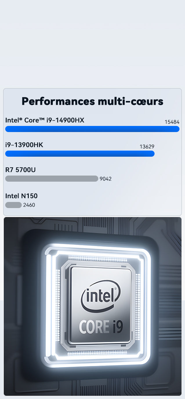 | Processeur | Intel® Core™ i9-14900HX 24 cœurs/32 threads (Intel 7, 36 Mo de cache L3, fréquence turbo jusqu'à 5,8 GHz) |
