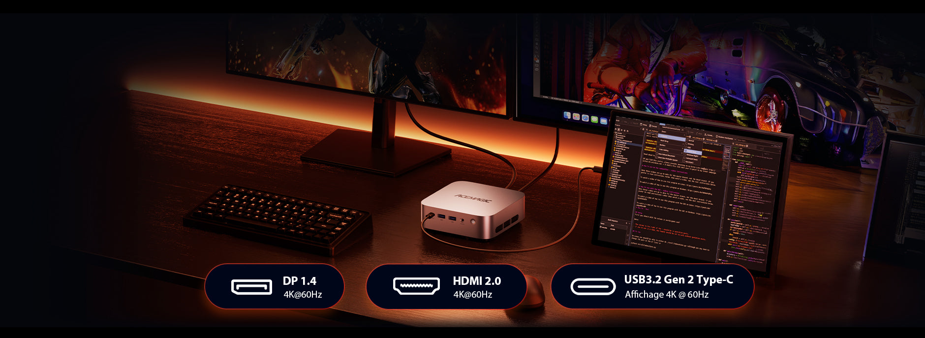 | Sortie vidéo | HDMI 2.0 ×1 (4K@60Hz) USB 3.2 Gen2 Type-C ×1 (4K@60Hz) DisplayPort 1.4b ×1 (4K@60Hz) |