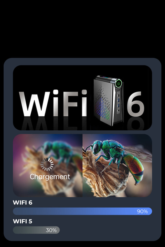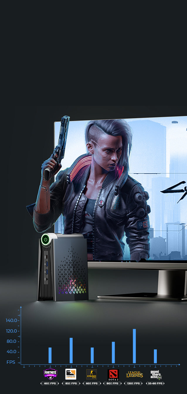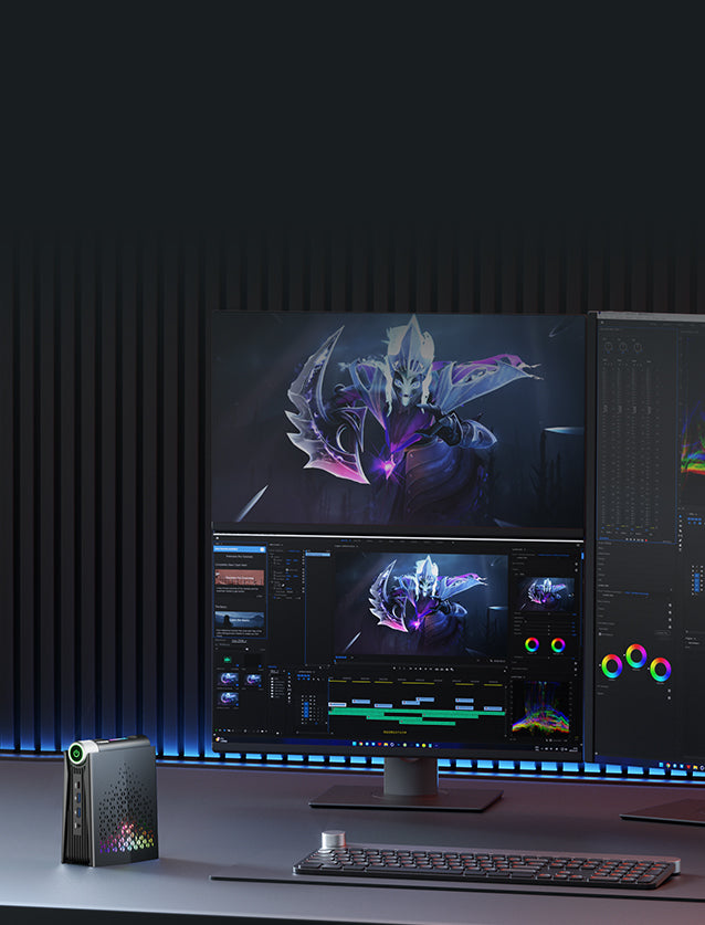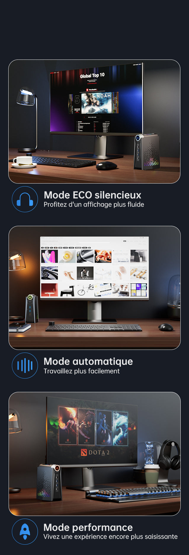 Le PC gaming compact S3A propose 3 modes d'éclairage (respiration/cycle/arc-en-ciel) pour personnaliser votre ambiance. Son système de refroidissement combine un module en alliage de cuivre haute performance et un ventilateur ultra-rapide, garantissant des températures optimales même lors des sessions de jeu les plus intenses.