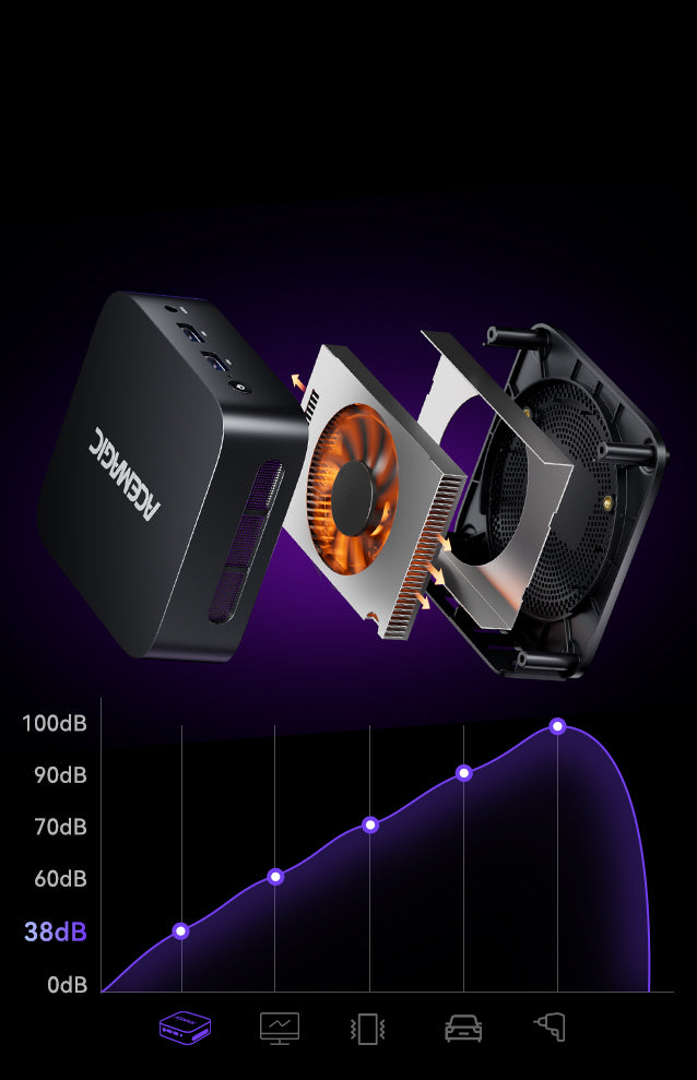Son boîtier minuscule (100 x 100 x 33 mm) s'adapte partout, tout en restant silencieux et écoénergétique. Grâce à la technologie des processeurs Intel (12ᵉ génération), il gère sans effort les tâches quotidiennes – que ce soit le streaming, les applications bureautiques ou le multitâche léger.
